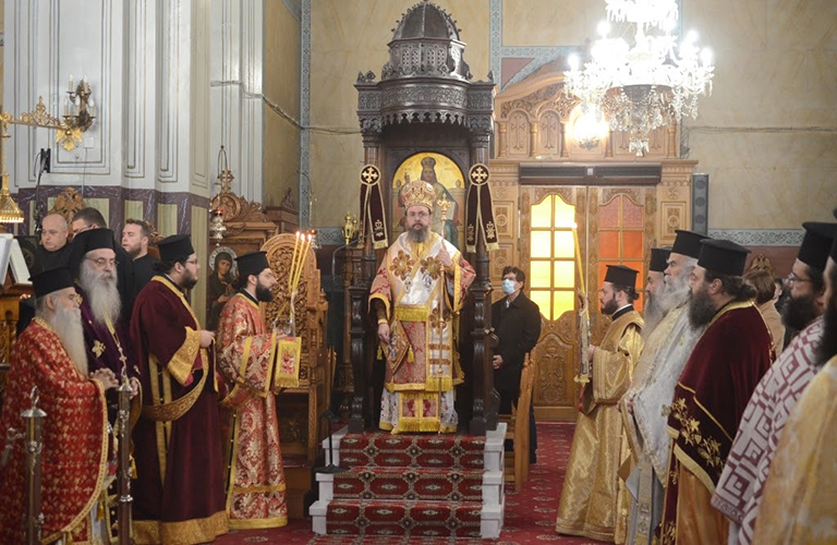 Της Ακολουθίας του Όρθρου και της πανηγυρικής Θείας Λειτουργίας προεξήρχε ο Σεβασμιώτατος Ποιμενάρχης μας, Μητροπολίτης Αιτωλίας και Ακαρνανίας κ. Δαμασκηνός, συμπαραστατούμενος από τον Ιερό Κλήρο της Ιεράς Πόλεως, με επικεφαλής τον Πρωτοσύγκελλο, αρχιμ. Επιφάνιο Καραγεώργο.