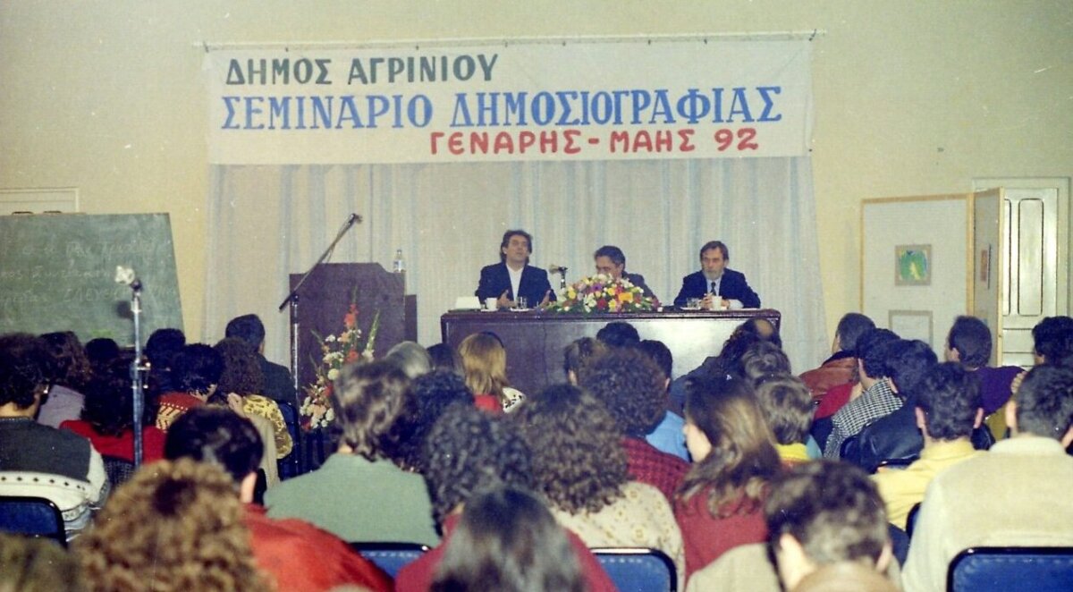 Σεμινάριο Δημοσιογραφίας στο Αγρίνιο το 1992, μια σπουδαία πρωτοβουλία του Δήμου Αγρινίου με τη συμβολή του Γιάννη Τριάντη και τη συμμετοχή κορυφαίων Δημοσιογράφων της εποχής.