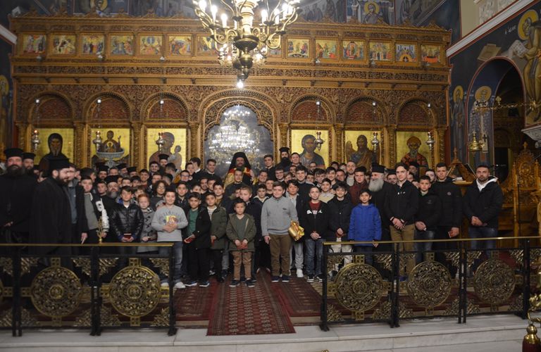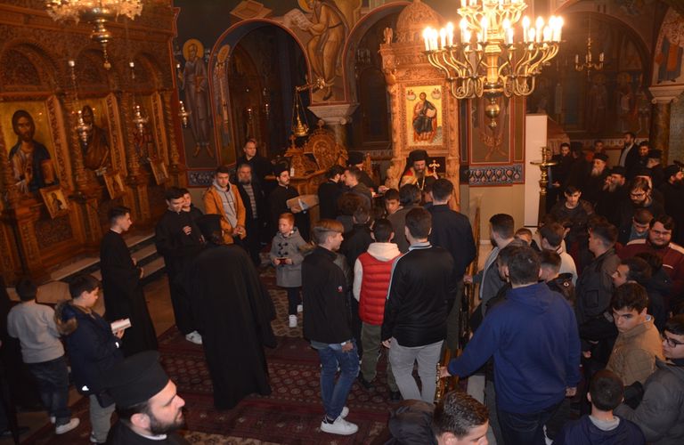 Στην Ακολουθία συμμετείχαν οι Αναγνώστες, οι Ιερόπαιδες και οι Υποψήφιοι Κληρικοί της τοπικής μας Εκκλησίας, προς τους οποίους ο Σεβασμιώτατος μίλησε πατρικά και καρδιακά στο τέλος της Ακολουθίας. Μοιράστηκε μαζί τους τις δικές του παιδικές αναμνήσεις από τα χρόνια που διακονούσε ως ιερόπαις στο Ιερό Βήμα της Εκκλησίας του χωριού του στη Σάμο και στη συνέχεια ως αναγνώστης στον Πειραιά. Τόνισε στα παιδιά, ότι αυτή η διακονία τους μέσα στην Εκκλησία είναι πολύ σημαντική και σπουδαία και θα πρέπει να την επιτελούν με σοβαρότητα, ιεροπρέπεια και σεβασμό. Αναφέρθηκε στον κίνδυνο της εξοικείωσης με τον χώρο του Ναού και με τα τελούμενα και τους επέστησε την προσοχή να κινούνται με σεβασμό, διάκριση και να μην ξεχνούν, ότι το έργο τους είναι ιερό και μοιάζει με αυτό των αγγέλων.