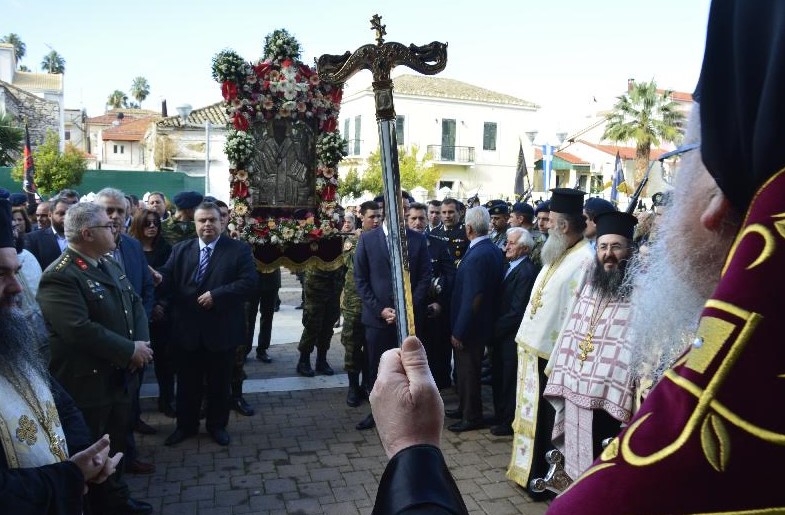 Ακολούθησε η πάνδημη λιτάνευση της ιεράς εικόνος του Αγίου Σπυρίδωνος, στους κεντρικούς δρόμους της Ιεράς Πόλεως, με τη συμμετοχή των πολιτικών και των στρατιωτικών αρχών της περιοχής.