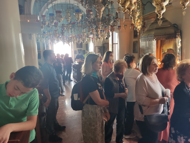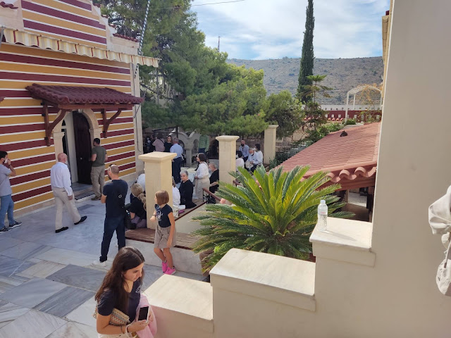 «Τη Δευτέρα, 26 Σεπτεμβρίου η Ενορία πραγματοποίησε Προσκυνηματική εκδρομή στο νησί της Αίγινας και ιδιαιτέρως την Ιερά Μονή του Αγίου Νεκταρίου όπου εκεί βρίσκεται ο τάφος του Αγίου καθώς και τα ιερά λείψανα του.