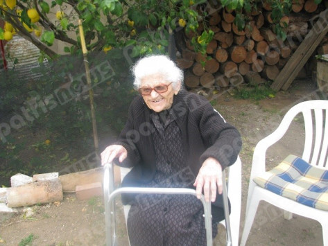 Μας υποδέχθηκε περπατώντας με ένα Πί, μαζί με τη Νατάσα, τη γυναίκα που τη φροντίζει εδώ και μερικά χρόνια, και στη συνέχεια κάθισε σε μια καρέκλα κοιτώντας μας με απορία. «Πόσων ετών είστε;» ήταν η πρώτη αυθόρμητη ερώτηση, για να έρθει η αφοπλιστική απάντηση: «Πού να θυμάμαι πόσο είμαι…». «Λίγο είμαι, δεν είμαι όσο λέτε, πρέπει να είμαι γύρω στα 105, αλλά δεν θυμάμαι και καλά. Δύσκολη η ζωή, όσο είχα τον άνδρα μου καλά έζησα. Τον έχασα νωρίς και μου άφησε τέσσερα μικρά παιδιά, αλλά ευτυχώς είχα καλά πεθερικά και με προσέξανε και μένα και τα παιδιά μου, δεν έχω παράπονο» είπε, κάνοντας μια σύντομη αναδρομή στο παρελθόν…