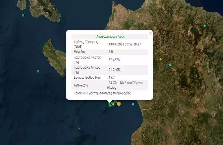 Ειδικότερα, ο σεισμός έγινε στις 06:52 και το επίκεντρό του ήταν 28 χιλιόμετρα νότια-νοτιοδυτικά του Πύργου Ηλείας.