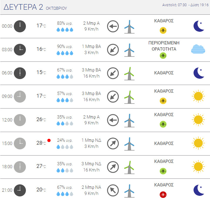 Ηλιοφάνεια με τοπικές νεφώσεις κατά διαστήματα αναμένονται τη Δευτέρα, 2 Οκτωβρίου 2023. Άνεμοι έως 6 μποφόρ στα πελάγη. Σχετικά υψηλές για την εποχή θερμοκρασίες.