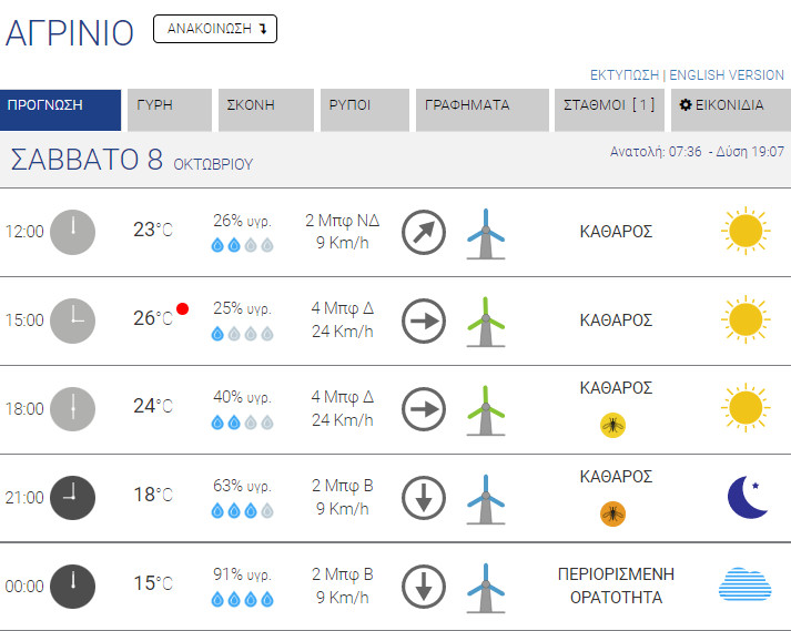Οι άνεμοι θα πνέουν στο Αιγαίο από βόρειες διευθύνσεις μέτριοι 5 μποφόρ και τοπικά στο Κεντρικό και Νότιο Αιγαίο ισχυροί 6 μποφόρ, ενώ στο Ιόνιο από μεταβλητές διευθύνσεις ασθενείς.