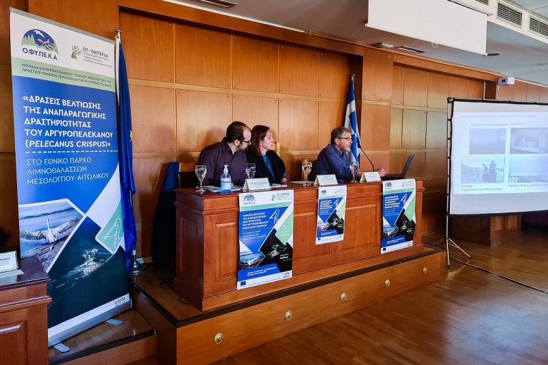 Πραγματοποιήθηκε η ημερίδα με θέμα: «Δράσεις βελτίωσης της αναπαραγωγικής δραστηριότητας του Αργυροπελεκάνου (Pelecanus crispus) στο Εθνικό Πάρκο Λιμνοθαλασσών Μεσολογγίου-Αιτωλικού»