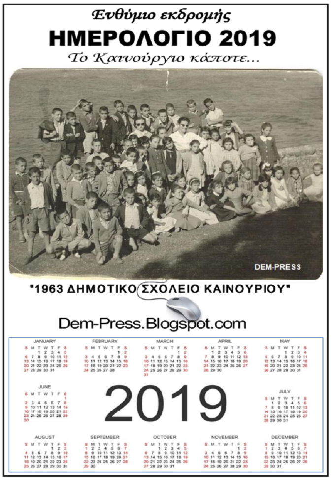 Ημερολόγιο 2019 – Ενθύμιο εκδρομής Δημοτικού Σχολείου Καινουρίου