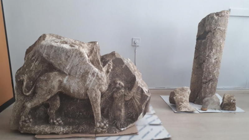Όμως, το μυστικό του αποκαλύφθηκε από τους αστυνομικούς της Ασφάλειας Ιωαννίνων που δέχθηκαν πληροφορίες και «όργωσαν» το αγρόκτημα, το οποίο βρίσκεται κοντά στον αρχαιολογικό χώρο. Έτσι, ανακάλυψαν ένα τμήμα από την στενή πλευρά μαρμάρινης ανάγλυφης σαρκοφάγου με παράσταση γρύπα που δεν σώζεται η κεφαλή του διαστάσεων 90Χ66Χ20 εκατοστών που χρονολογείται στην ρωμαϊκή περίοδο μεταξύ του 2ου και 5ου αιώνα μ.Χ., αλλά και τέσσερα μικρά μαρμάρινα θραύσματα, εκ των οποίων το μεγαλύτερο διαστάσεων 20Χ25 εκατοστών που αποτελεί τμήμα της σαρκοφάγου. Τέλος, κατέσχεσαν ένα κυκλικό πήλινο υφαντικό βάρος άγνωστης περιόδου.