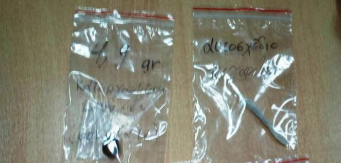 - Μια νάιλον συσκευασία, που περιείχε κάνναβη, σε μορφή σοκολάτας συνολικού βάρους 4,9 γραμμαρίων.