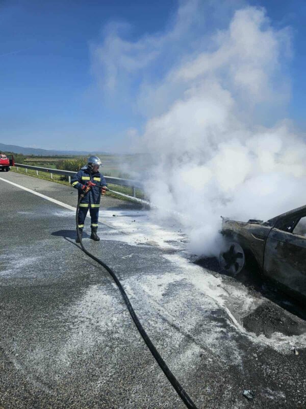 Σύμφωνα με πληροφορίες, οι επιβάτες πρόλαβαν και βγήκαν εγκαίρως από το όχημα, το οποίο καταστράφηκε ολοσχερώς.