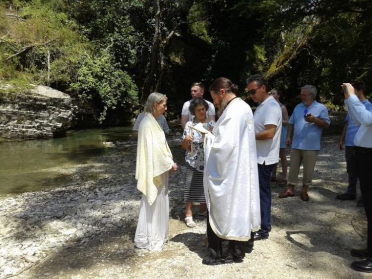 Το μόνο που ακουγόταν ήταν ο ήχος του νερού και το κελάηδισμα των πουλιών, ενώ η Άννα, ο Τζον και τα τρία παιδιά τους (δύο αγόρια κι ένα κορίτσι) απολάμβαναν μαγεμένοι τη φυσική ομορφιά, με αγωνία και για το πώς θα γίνει η βάπτιση. Ήταν εκεί ο Νίκος Γκατζογιάννης και η συνεργάτιδά του, η Ελληνοαμερικανίδα Χριστίνα Πιπέρι, η οποία ζει στη Νεμπράσκα των ΗΠΑ και ήταν η νονά στη βάπτιση.