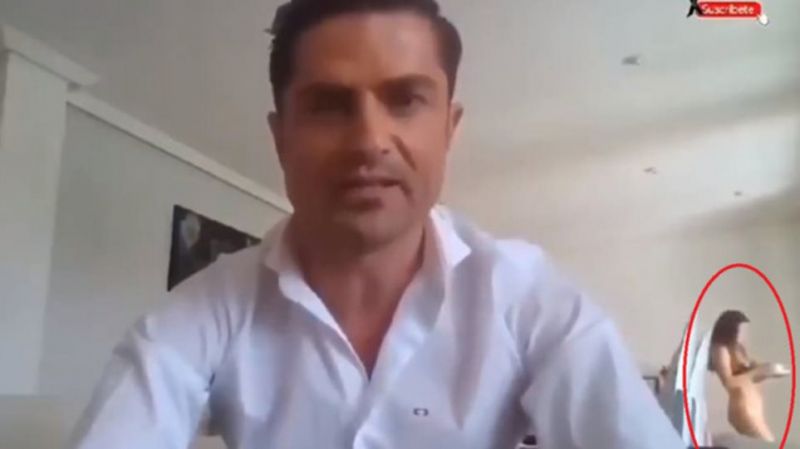 Στα πράσα πιάστηκε ο εικονιζόμενος Ισπανός παρουσιαστής ειδήσεων, ο οποίος, ενώ έκανε ζωντανή μετάδοση από το σπίτι του σε ισπανικό κανάλι στο ΥouTube, o φακός εντόπισε μία ημίγυμνη κοπέλα -δη δημοσιογράφο- να περπατάει σαν να μην συμβαίνει τίποτα.