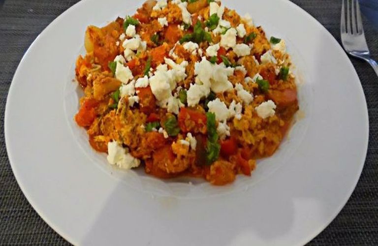 - Προσθέτουμε τη φέτα και τη ρίγανη, ανακατεύουμε και σερβίρουμε. Συνοδεύουμε με ζεστό χωριάτικο, προζυμένιο ψωμί.