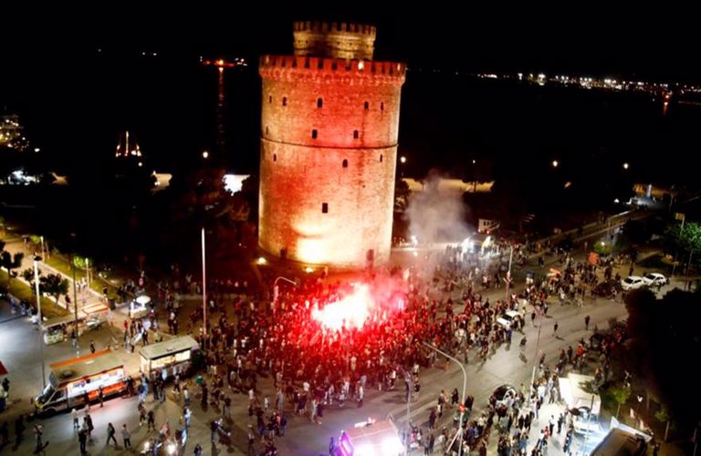 Οι οπαδοί του «δικεφάλου του βορρά» έσπευσαν στον Λευκό Πύργο για να πανηγυρίσουν όλοι μαζί την κούπα που κατέκτησε η ομάδα στο Ο.Α.Κ.Α.