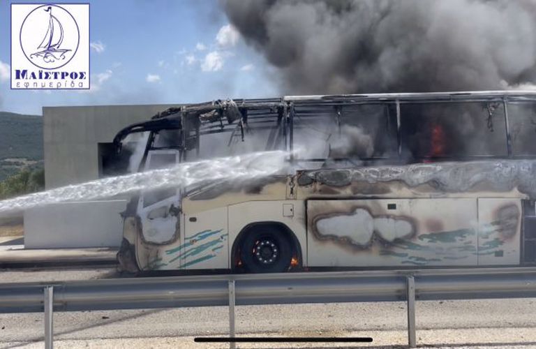 Κάηκε ολοσχερώς λεωφορείο του Κ.Τ.Ε.Λ Κέρκυρας 1χιλιομετρο μετά τα διόδια Μενιδίου στον κλάδο προς Ιωάννινα. Στο όχημα επέβαιναν περίπου 30 επιβάτες που πρόλαβαν να εγκαταλείψουν.