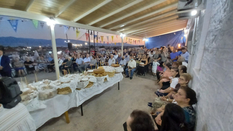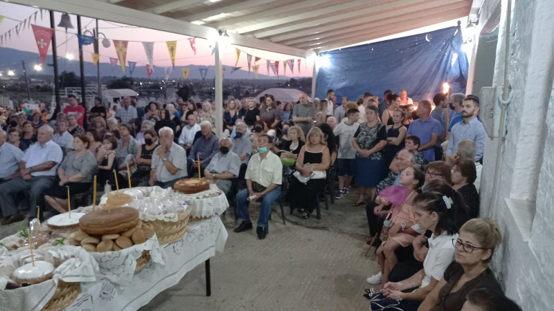 Παρουσία πλήθους πιστών με θρησκευτική κατάνυξη και λαμπρότητα τελέστηκε το απόγευμα της Τετάρτης ο Πανηγυρικός Εσπερινός μετά αρτοκλασίας στον πανηγυρίζοντα Ιερό Ναό της Πολιούχου του Καινουργίου Παναγία η Χρυσοχεριά.