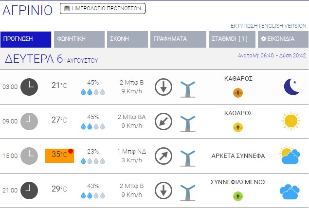 Ο καιρός στο Αγρίνιο σήμερα (Δευτέρα, 06/08) – (Κείμενο-Φωτό-Ηχητικό)