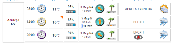 Ο καιρός στο Αγρίνιο σήμερα (Δευτέρα, 06/02)