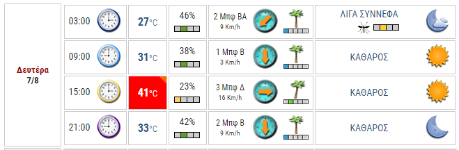 Ο καιρός στο Αγρίνιο σήμερα (Δευτέρα, 07/08)