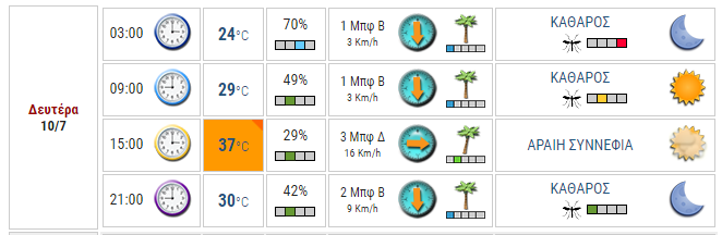 Ο καιρός στο Αγρίνιο σήμερα (Δευτέρα, 10/07)