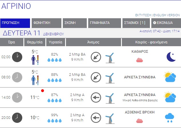 Ο καιρός στο Αγρίνιο σήμερα (Δευτέρα, 11/12) – (Κείμενο-Φωτό-Ηχητικό)