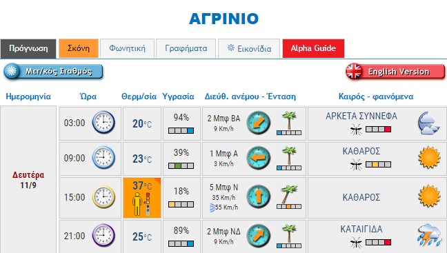 Ο καιρός στο Αγρίνιο σήμερα (Δευτέρα, 11/09)