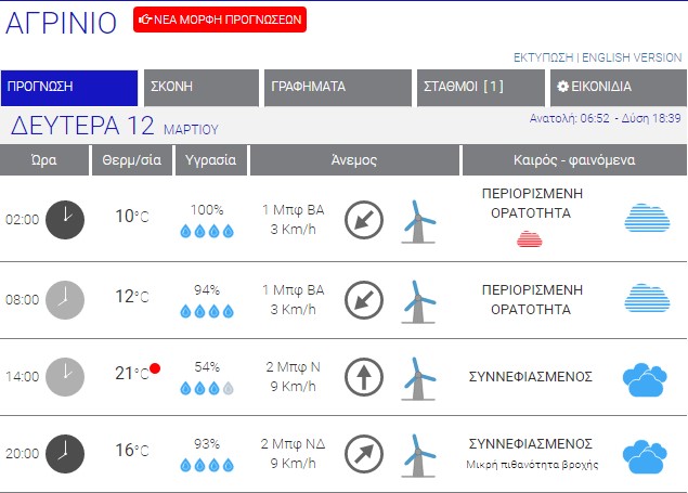 Ο καιρός στο Αγρίνιο σήμερα (Δευτέρα, 12/03) – (Κείμενο-Φωτό-Ηχητικό)