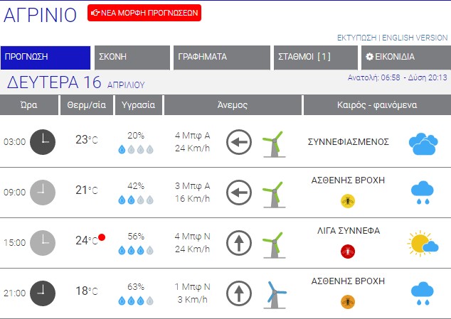 Ο καιρός στο Αγρίνιο σήμερα (Δευτέρα, 16/04) – (Κείμενο-Φωτό-Ηχητικό)