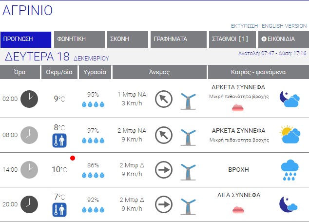 Ο καιρός στο Αγρίνιο σήμερα (Δευτέρα, 18/12) – (Κείμενο-Φωτό-Ηχητικό)