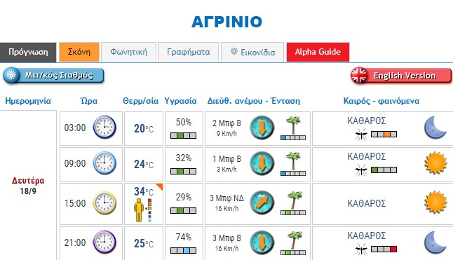 Ο καιρός στο Αγρίνιο σήμερα (Δευτέρα, 18/09)