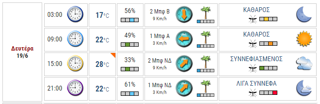 Ο καιρός στο Αγρίνιο σήμερα (Δευτέρα, 19/06)
