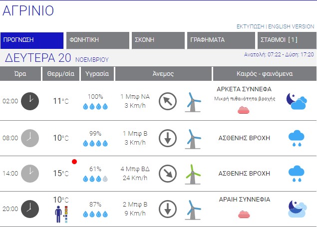 Ο καιρός στο Αγρίνιο σήμερα (Δευτέρα, 20/11) – (Κείμενο-Φωτό-Ηχητικό)