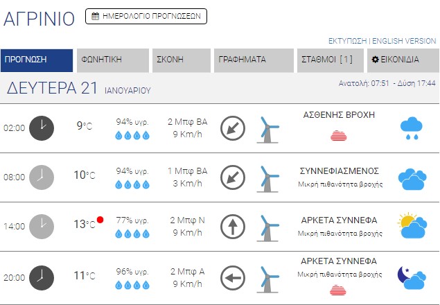 Ο καιρός στο Αγρίνιο σήμερα (Δευτέρα, 21/01) – (Κείμενο-Φωτό-Ηχητικό)