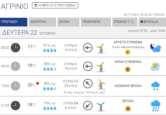 Ο καιρός στο Αγρίνιο σήμερα (Δευτέρα, 22/10) – (Κείμενο-Φωτό-Ηχητικό)