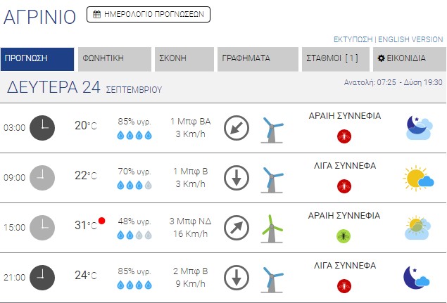 Ο καιρός στο Αγρίνιο σήμερα (Δευτέρα, 24/09) – (Κείμενο-Φωτό-Ηχητικό)
