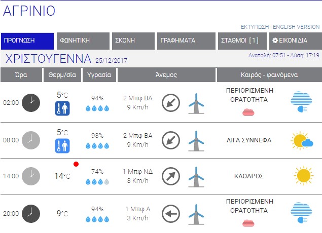 Ο καιρός στο Αγρίνιο σήμερα (Δευτέρα, 25/12) – (Κείμενο-Φωτό-Ηχητικό)