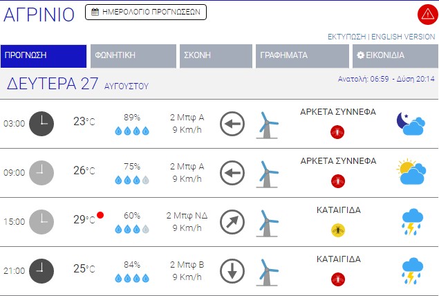 Ο καιρός στο Αγρίνιο σήμερα (Δευτέρα, 27/08) – (Κείμενο-Φωτό-Ηχητικό)