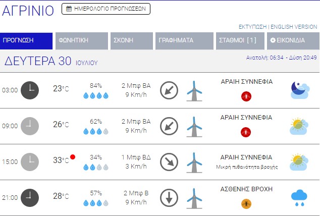 Ο καιρός στο Αγρίνιο σήμερα (Δευτέρα, 30/07) – (Κείμενο-Φωτό-Ηχητικό)