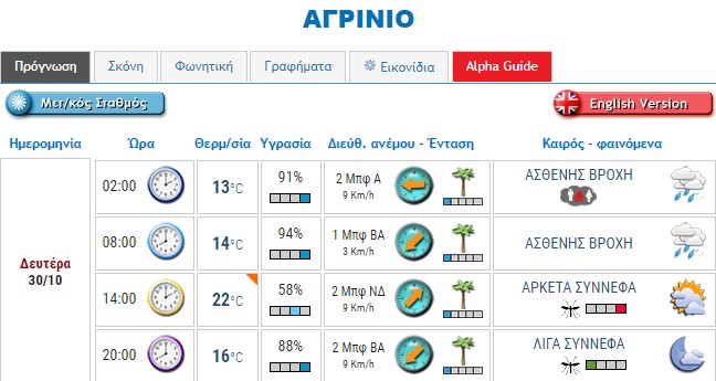 Ο καιρός στο Αγρίνιο σήμερα (Δευτέρα, 30/10)
