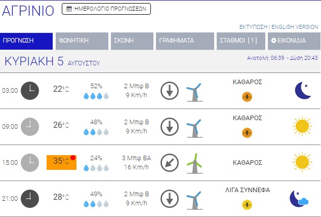 Ο καιρός στο Αγρίνιο σήμερα (Κυριακή, 05/08) – (Κείμενο-Φωτό-Ηχητικό)