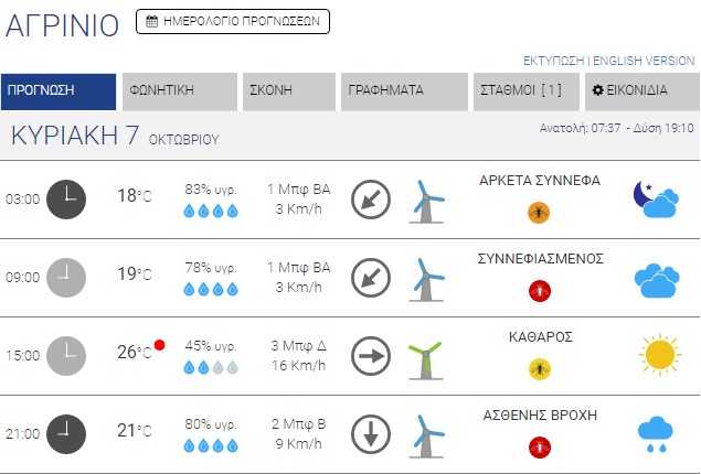 Ο καιρός στο Αγρίνιο σήμερα (Κυριακή, 07/10) – (Κείμενο-Φωτό-Ηχητικό)