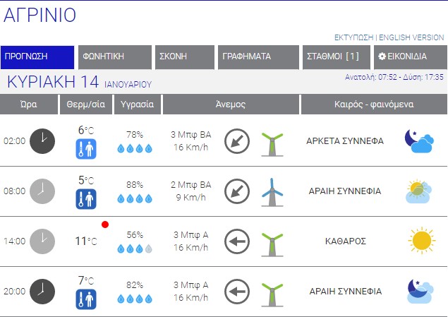 Ο καιρός στο Αγρίνιο σήμερα (Κυριακή, 14/01) – (Κείμενο-Φωτό-Ηχητικό)