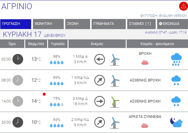 Ο καιρός στο Αγρίνιο σήμερα (Κυριακή, 17/12) – (Κείμενο-Φωτό-Ηχητικό)