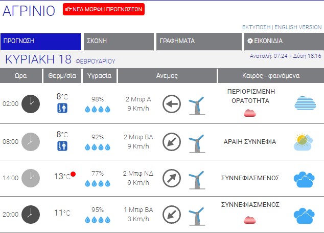 Ο καιρός στο Αγρίνιο σήμερα (Κυριακή, 18/02)