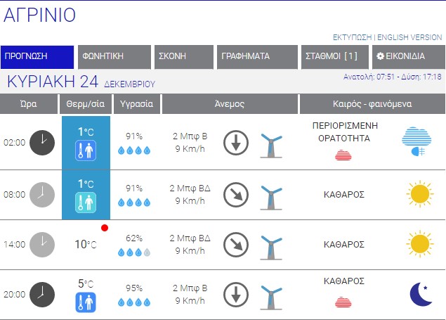 Ο καιρός στο Αγρίνιο σήμερα (Κυριακή, 24/12) – (Κείμενο-Φωτό-Ηχητικό)