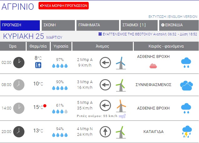 Ο καιρός στο Αγρίνιο σήμερα (Κυριακή, 25/03) – (Κείμενο-Φωτό-Ηχητικό)