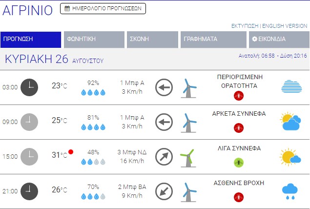 Ο καιρός στο Αγρίνιο σήμερα (Κυριακή, 26/08) – (Κείμενο-Φωτό-Ηχητικό)