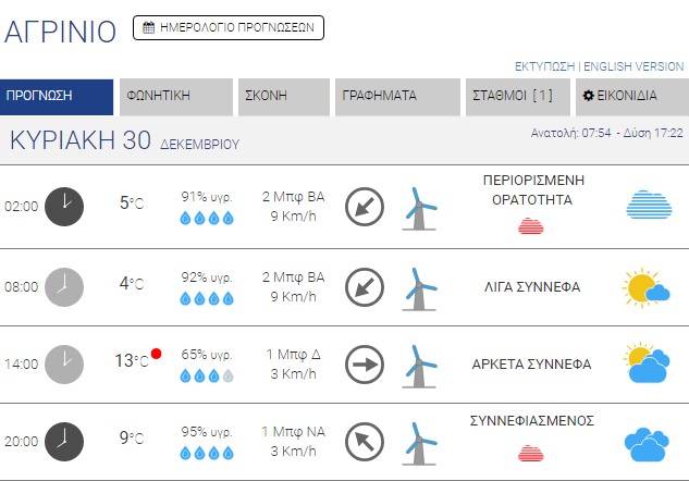 Ο καιρός στο Αγρίνιο σήμερα (Κυριακή, 30/12) – (Κείμενο-Φωτό-Ηχητικό)