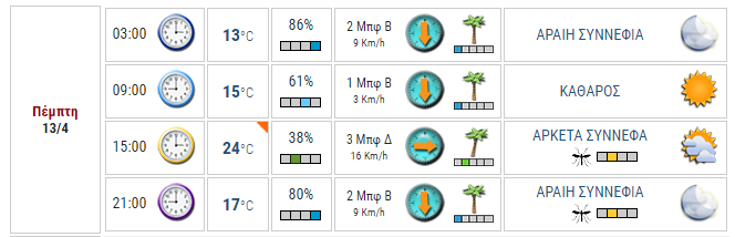 Ο καιρός στο Αγρίνιο σήμερα (Μ. Πέμπτη, 13/04)