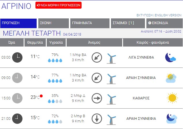 Ο καιρός στο Αγρίνιο σήμερα (Μ. Τετάρτη, 04/04) – (Κείμενο-Φωτό-Ηχητικό)